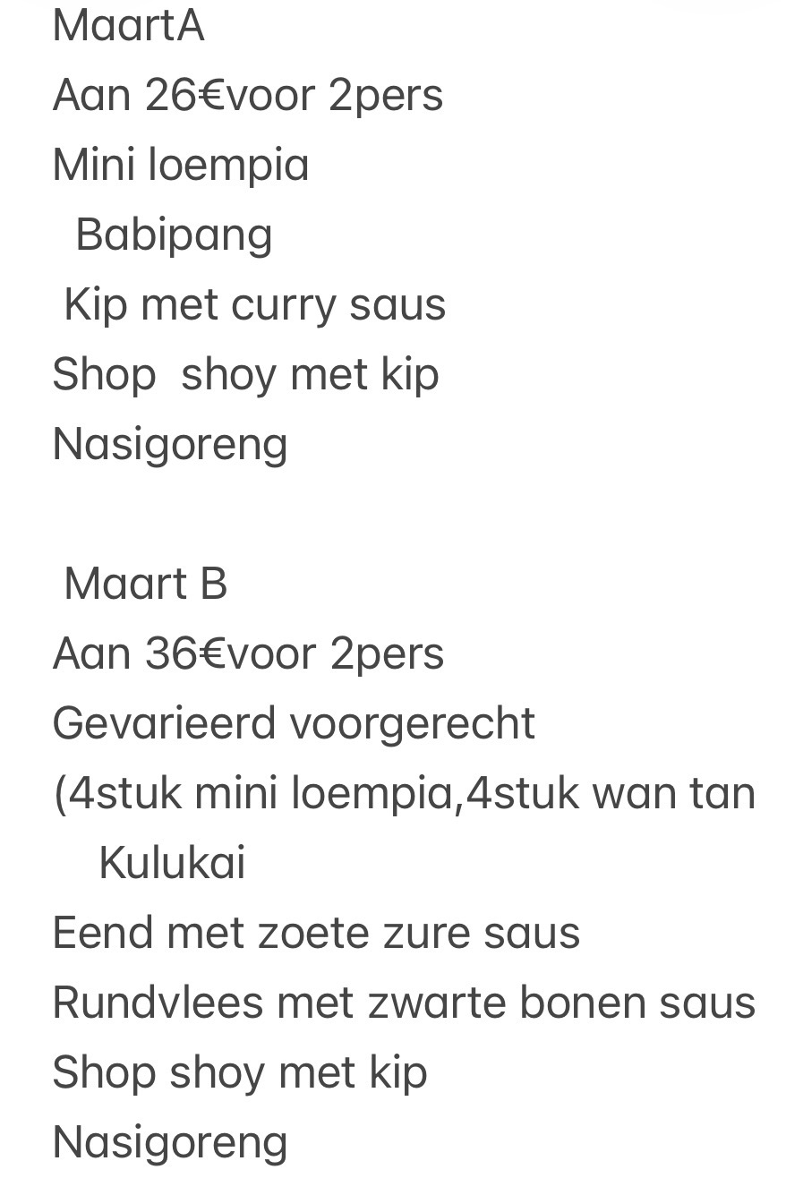 menu voor meeneemen ❤️